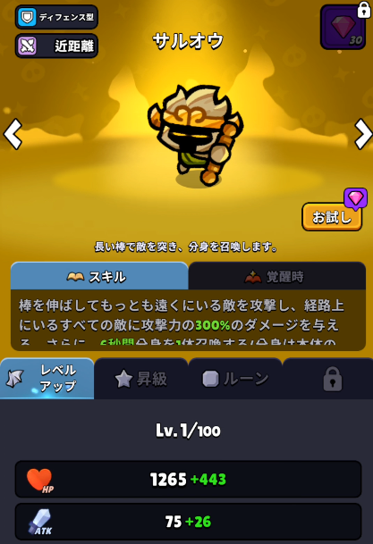 サルオウ ディフェンス型 X Facebook はてブ LINE Pinterest コピー 2025.11.092025.11.13 目次 概要スキル紹介考察 概要 スキル紹介 考察 スキルが超優秀。 ディフェンス型でありながら、範囲攻撃による火力が高い。分身は敵のバックラインに発生して、後衛悪魔にダメージを与えつつデコイとしても機能する。 レジェンドの中でもあたり枠。