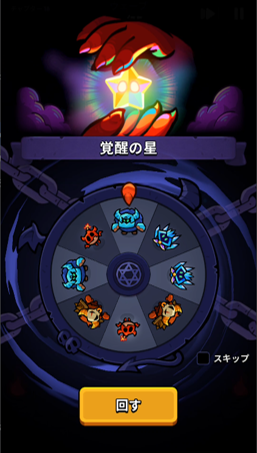 ウェーブ中に倒した敵が星をドロップすると覚醒ルーレットを回すことができる。
